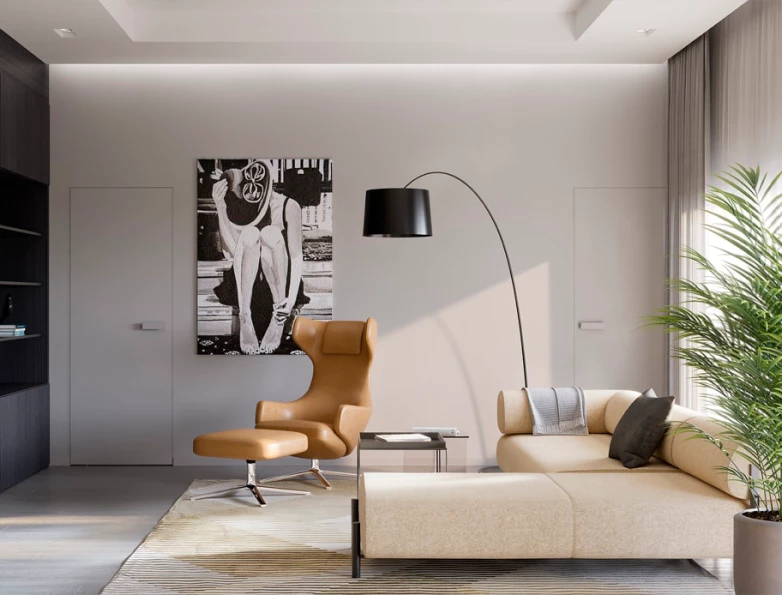 Дизайн апартаментов выполнен в современном и неоклассическом стилях, каждый из которых реализован в двух цветовых гаммах.